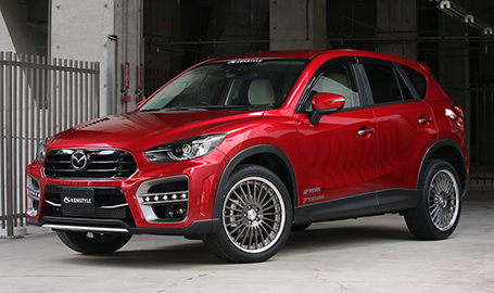 フロントバンパーの立体感溢れる造形が豊かな質感を生み出し、CX-5にさらに高い車格感を演出します。またバンパーに一体成型されたフロントグリルは、純正よりも横長の形状を採用。バンパー内に配置された各フィンと相まって水平方向への広がりを強調し、車幅をより広く見せます。